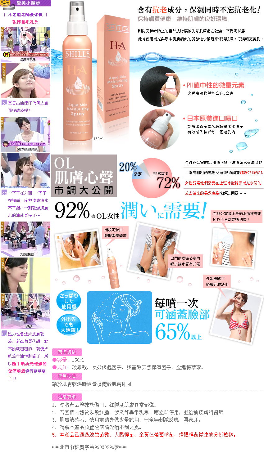 Description : SHILLS Aqua Skin Moisturizing Spray 150ml產品簡介: