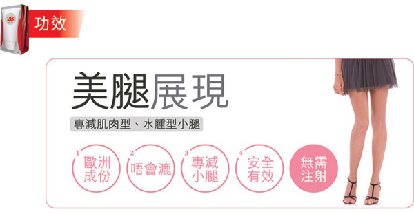 2BOTOX的主要成份類元素,由於功效顯着,以往皆被歐美品牌争相采用,但兩年前售價往往要過千元一支,未必人人買得起。而自上年日本将技術普及後,類 價格亦相應下降,而最新推出的2BOTOX Alternative for leg 速瘦易小腿霜,主要是針對小腿肌肉而設計的産品,對不同的腿型困擾,如水腫型及肌肉型小腿,有明顯曲線回複的效果,其中所含的瓜拿那與,對於促進新陳代 謝、脂肪代謝也有相當的幫助,至令小腿或甚至是大腿的曲線同樣有很好的效果。使用方法