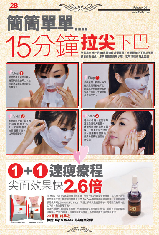 次2B Mask For Face,可逐次吸收大量瘦面精華,逐次同時輪廓,拉尖下巴、收緊雙下巴。