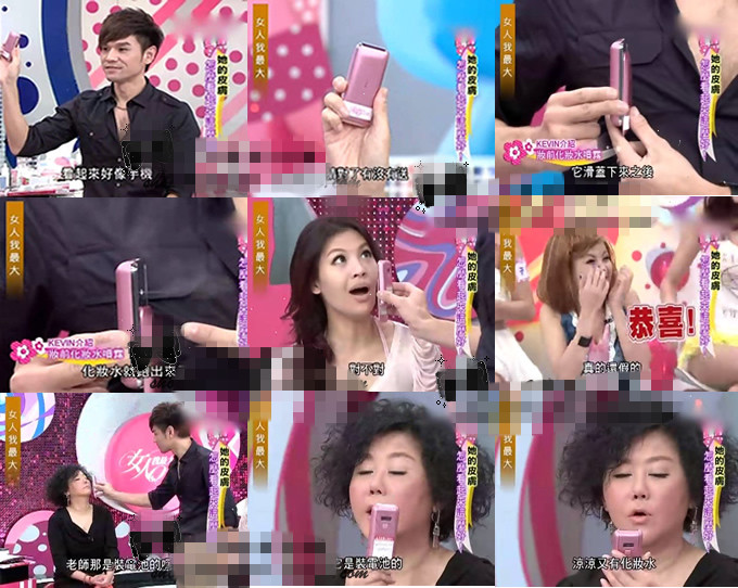 2.将机面上盖往下滑,喷口会立即散发美容液,30秒后会自动停止.(上妆前可距离脸部约5公分使用,上妆后可距离脸部约15公分使用)