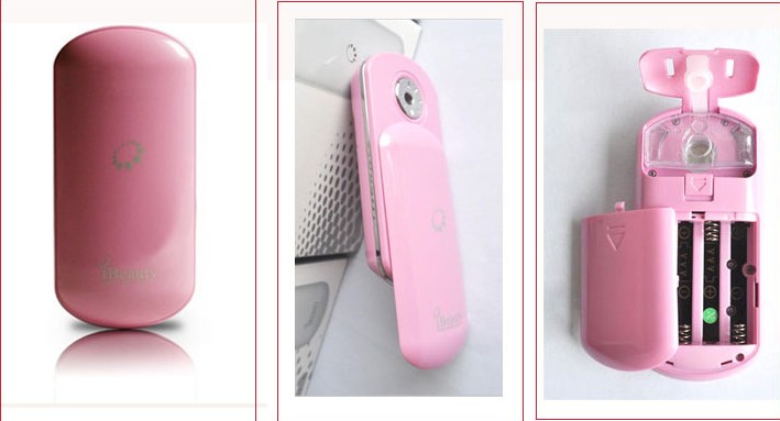 *简单设计,只要轻轻将滑盖滑开,美颜器立即散发超微粒子美容液,30秒美颜器会自动停止。