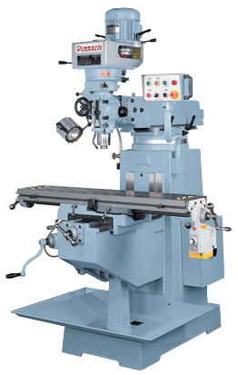 | MODEL | PK-GRSM-B | | Table | 1270 x 254mm | | TRAVEL | | Longitudinal | 800 mm | | Cross | 380 mm | | Vertical | 380 mm | | Spindle Travel | 127 mm | | SPINDLE | | Taper | R8 or NT30# | | Spindle Spindle | Low Range | Low | 60, 95, 150, 225 | | High | 535, 825, 1320, 1930 | | High Range | Low | 120, 195, 305, 450 | | High | 1055, 1640, 2620, 3820 | | Quill Feeds Per. Rev. of Spindle | 0.04, 0.08, 0.15 MM | | Main Motor | 2.2 KW, 3PH or 3.7 KW, 3PH | | Swivel Angle to Right & Left | 90° | | Swivel Angle to Front & Back | 45° | | Approximate Net Weight | 1350 Kgs |