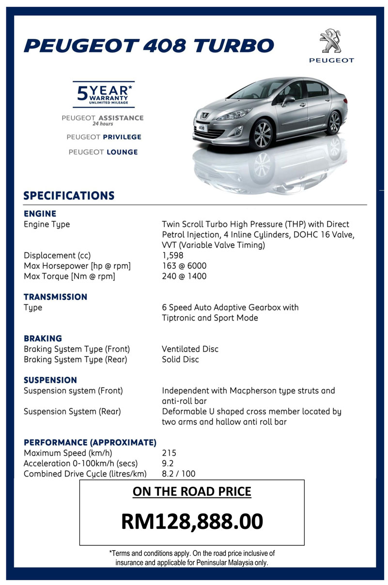 The 408 embodies the guiding spirit of Peugeot design stylists, summed up in very few words; space, performance and elegance. Its design cues are one of balanced proportions and simplicity, thus creating a subtly sleek, pure and sensual ride.