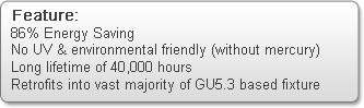 Description : | Product | : | HX-FL-30W / 50W | | Power Consumption | : | 30 W / 50W | | Beam Angle | : | 180° | | Colour Temperature | : | Warm White (2700K/3000K/4000K) | | Life Span | : | 35,000 hours | | Dimension | : | L227 x W187 x H133 | | Compatiblity | : | 50W / 100W Halogen Flood Light |