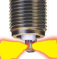 - Utilizing a special ground electrode design- The spark discharge can occur in almost 360 degree perimeter at the place with the most optimal air fuel composition; which is where the ionization of the molecule is most easily achieved. This special feature ensures that the spark occurs at the best possible place for ignition, unlike in the conventional spark plug design where the spark always occurs in the same confined place. Since the air fuel mixture inside the combustion chamber is not homogenous (has different concentration at different places) this results in faster and better ignition of each ignition cycle. In addition, there is no need for indexing of the spark plugs since the plug is symmetrical and there is no ground electrode restricting the access of the air fuel mixture.