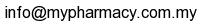 Syarikat yang khusus| Syarikat : | MY PHARMACY SERVICES SDN BHD | | Faks : | 607-3332110 | | Alamat : | 56A, JALAN PERANG TAMAN PELANGI 80400 JOHOR BAHRU, JOHOR, MALAYSIA | | Emel : |  | | Website : | http://mypharmacy.plansbiz.net |