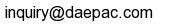 Syarikat yang khusus| Syarikat : | DAEPAC INDUSTRIES SDN BHD | | Faks : | +607 356 0617 | | Alamat : | 86, 88, 90 Jalan Bertam 5, 81100 Taman Daya, Johor Bahru, Johor, Malaysia. | | Emel : |  | | Website : | http://daepac.plansbiz.net |